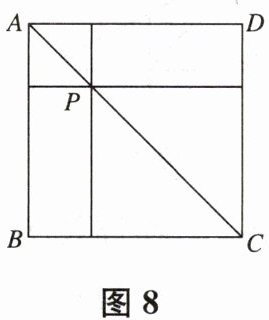 10. 如图8所示,P是正方形对角线AC上一点,过点P分别作两组对边的垂线,将正方形分为两个小正方形和两个矩形.如果正方形ABCD的周长为16,那么图中两个小正方形的周长之和是______.