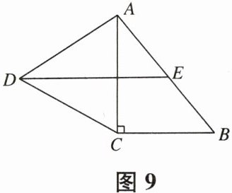 11. 如图9,在Rt△ABC中,∠ACB= 90°,以AC为一边向外作等边三角形ACD,E为AB的中点,连接DE.求证:DE//CB.