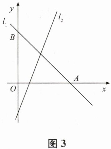 13. 如图3,直线 $ l _ { 1 } $ 与x轴交于点 $ A ( 5,0 ) $,与y轴交于点 $ B ( 0,5 ) $,直线 $ l _ { 2 } $ 的解析式为 $ y = 3 x - 3 $.