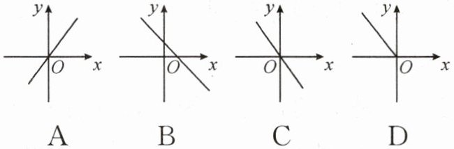 9. 若实数k在数轴上的位置如图2所示,则函数 $ y = k x $ 的图象大致是 ( )