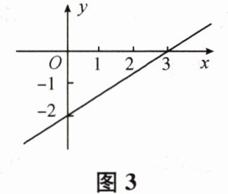 9. 已知函数 $ y = kx + b $ 的图象如图 3 所示,则 $ k = $____, $ b = $____.当 $ -1 \leq y \leq 0 $ 时, $ x $ 的取值范围是____.