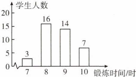 4. 下图是根据某班 40 名同学一周的体育锻炼情况绘制的条形图,关于该班 40 名同学一周参加体育锻炼时间的说法错误的是 ( )