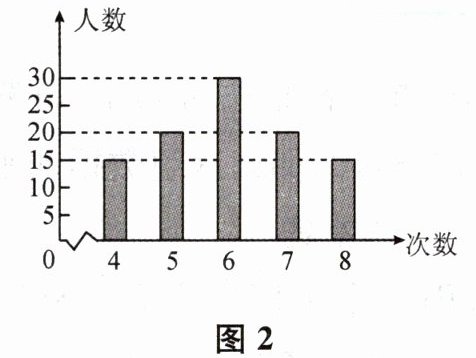 8. 某单位举办英语培训班,100 名职工在一个月内参加英语培训的次数如图 2.