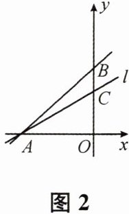 6. 如图 2,已知直线$y= x+3$与x轴、y轴分别交于A,B两点,直线l经过点A,与线段OB交于点C,把$\triangle AOB的面积分为2:1$的两部分,求直线l的解析式.