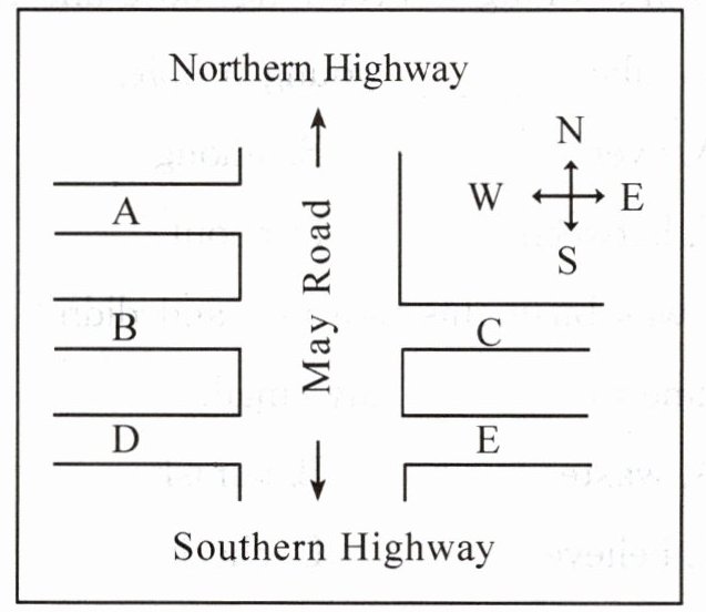 May Road is in the center of Newtown. It is a street with lots of shops on it. It goes from north to south. There are other streets off May Road to the east and west.