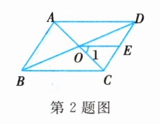 2. 如图,在$□ ABCD$中,对角线$AC$与$BD$相交于点$O$,点$E$是边$CD$的中点,连接$OE$.若$∠ABC=60^{\circ}$,$∠BAC=80^{\circ}$,则$∠1$的度数为 (
