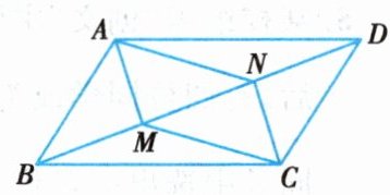 2. 如图,四边形 $ABCD$ 是平行四边形,$M、N$ 是对角线 $BD$ 上的两点,且 $BM = DN$. 求证:四边形 $AMCN$ 是平行四边形.