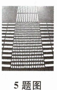 5. 城市道路建设中,人行道上都要求铺设供盲人行走的“盲道”,实现无障碍通行. 如图所示是一张人行道的照片,照片中间是“盲道”,其地砖表面有一棱棱凸起的部分,而两侧是普通人行道,其地砖表面是平的,盲人行走时,如果不小心从盲道走到了普通人行道上,由于脚底与地面之间的受力面积