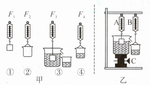(用弹簧测力计示数对应的字母表示)成立,则阿基米德原理成立.(3)在采用图甲所示方式进行实验时,若测力计在整个过程中都没有进行调零,则小明