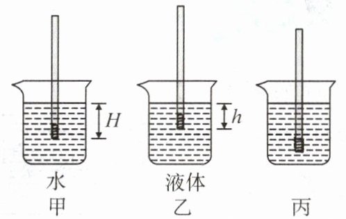 $g/cm^{3}$.(2)吸管漂浮在其他液体中时(图乙),液面下方的深度$h= 10cm$,则$ρ_{液}=$