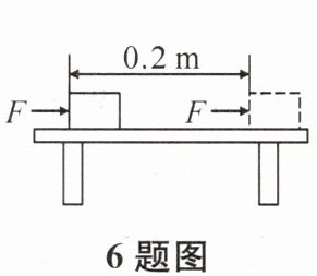 6. 如图所示,物体静止在水平桌面上,现用50N的水平推力,使其在桌面上移动了0.2m的距离,说明推力可以改变物体的