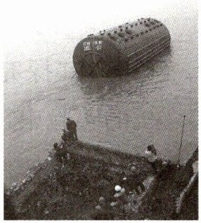 4. 物理知识在生活中有很多的应用,比如在沉船的打捞中经常使用“浮筒打捞法”.如图所示是用于沉船打捞的浮筒,往浮筒内灌水,沉到水底沉船旁并用钢缆固定在沉船上,再把空气压入浮筒把水排出,之后浮筒就会带着沉船一起浮到水面.请你分析说明排出浮筒中的水后,沉船能被打捞起来的原因.(不考虑水的流动、密度变化和浮筒体积变化)