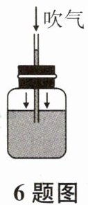 6. 如图所示,小明在玻璃瓶内装入适量带颜色的水,把细玻璃管通过橡皮塞插入瓶中,并往瓶中吹气,使玻璃管内液面高于玻璃瓶内液面,制成一个简易的气压计,此时玻璃瓶内气压