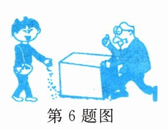 6. 如图所示,爷爷推箱子感到吃力。聪明的芳芳在爷爷推的箱子下面撒一些圆形的砂子后,爷爷感觉轻松多了。这是因为压力一定时,滚动摩擦力比滑动摩擦力要