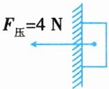 3. 如图,小明用 4N 的力把重 2N 的粉笔擦压在竖直黑板上静止,压力方向沿水平方向向左。此过程粉笔擦羊毛面和黑板接触,羊毛面比背面木壳粗糙。下列说法正确的是(