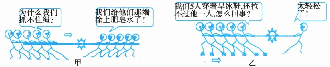 8. 试着用摩擦的物理知识来解释如图所示漫画《不公平的拔河》中左侧同学们的疑问。