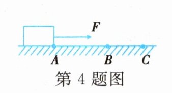 4. 在粗糙程度相同的水平面上,重为10N的物体在F=5N的水平拉力作用下,沿水平面由A点匀速运动到B点,此时撤去拉力,物体继续向前运动到C点停下来,此过程中下列说法正确的是(