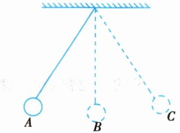 10. 如图所示,小球在A、C之间来回摆动,请在图中作出小球在A位置时所受到的细绳拉力F和重力G的示意图。
