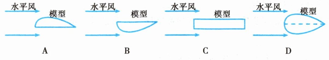 2. 用水平风吹如图所示的四个模型,其中空气对模型下表面的压强小于上表面的压强的是(