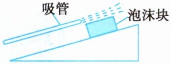 8. 如图所示,泡沫块正沿粗糙斜面缓慢下滑,现用吸管沿泡沫块上表面吹气。请判断吹气过程中它将继续下滑还是停止滑动?写出判断理由。