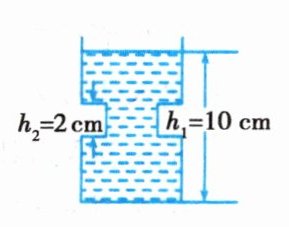 10. 如图所示,质量为1kg的剖面工字形的容器放在水平桌面,上、下部的横截面积均为$100cm^{2}$,中部横截面积为$50cm^{2}$,中部高度为2cm,其中装有900g、深度为$h_{2}=10cm$的某种液体(g取10N/kg)求: