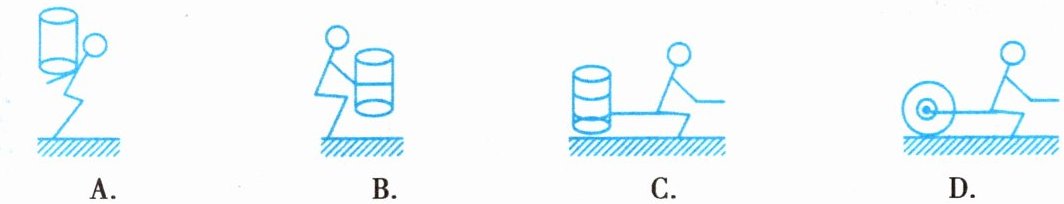 1. 我国西部地区夏天经常出现干旱。旱季时常用中间有转轴的塑料桶运水。如图所示,小华分别用背、手抱、平拉、滚拉的方式运满桶水,在粗糙程度相同的水平地面上匀速行走相同路程,她对满桶水做功最多的是(