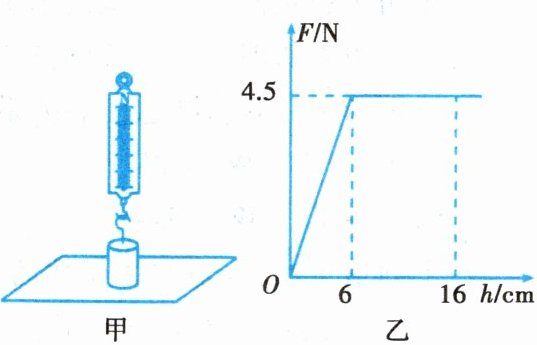 10. 如图甲所示,用弹簧测力计测量水平桌面上的钩码所受的重力。弹簧测力计从图示位置开始向上缓慢提升,其示数F与上升的高度h之间的关系图象如图乙所示。试解答问题: