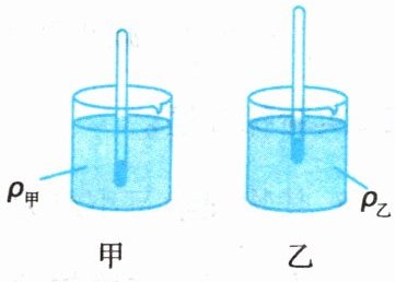 2. 一支密度计分别放入甲、乙两种液体中,静止时位置如图所示。若密度计在甲、乙液体中受到的浮力分别是$F_{甲}$、$F_{乙}$,甲、乙两种液体的密度分别为$ρ_{甲}$、$ρ_{乙}$。下列说法正确的是 (