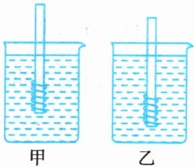 3. 在木棒的一端缠绕一些细铜丝制成简易的液体密度计,将其分别放入盛有甲、乙两种液体的烧杯中处于静止状态,如图所示。若密度计在甲、乙液体中受到的浮力分别是$F_{甲}$、$F_{乙}$,甲、乙两种液体的密度分别为$ρ_{甲}$、$ρ_{乙}$。则 (