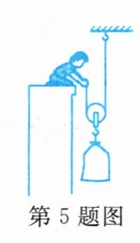 5. 如图所示,某同学使用动滑轮把 600 N 的重物匀速提升了 3 m,所用的拉力是 400 N。下列说法正确的是 (