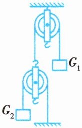 5. 小明利用两个滑轮$A$、$B$组成如图所示的装置,将两个重力相等的重物$G_{1}$、$G_{2}$分别挂在绳子两端,若不计滑轮、绳子的重力和摩擦,下列说法正确的是(