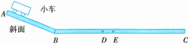 (3)小车从斜面运动到水平木板上,到达D点时小车的速度为$v_{1}$,若此时小车所受外力突然消失。当小车到达E点速度为$v_{2}$,则两者的大小关系是$v_{1}$
