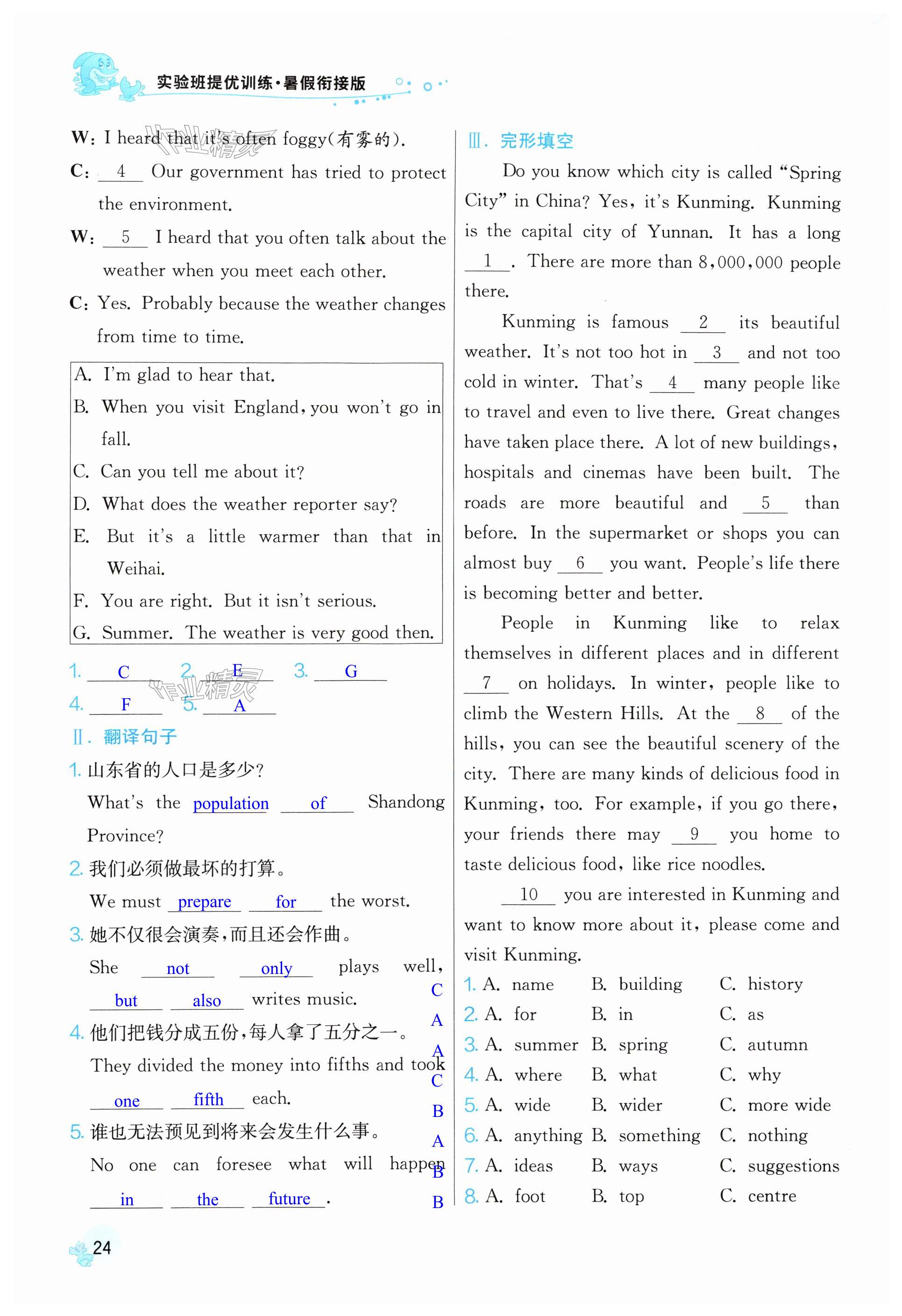 注:目前有些书本章节名称可能整理的还不是很完善,但都是按照顺序排列的,请同学们按照顺序仔细查找。练习册 2025年实验班提优训练暑假衔接版八升九年级英语外研版 答案主要是用来给同学们做完题方便对答案用的,请勿直接抄袭。