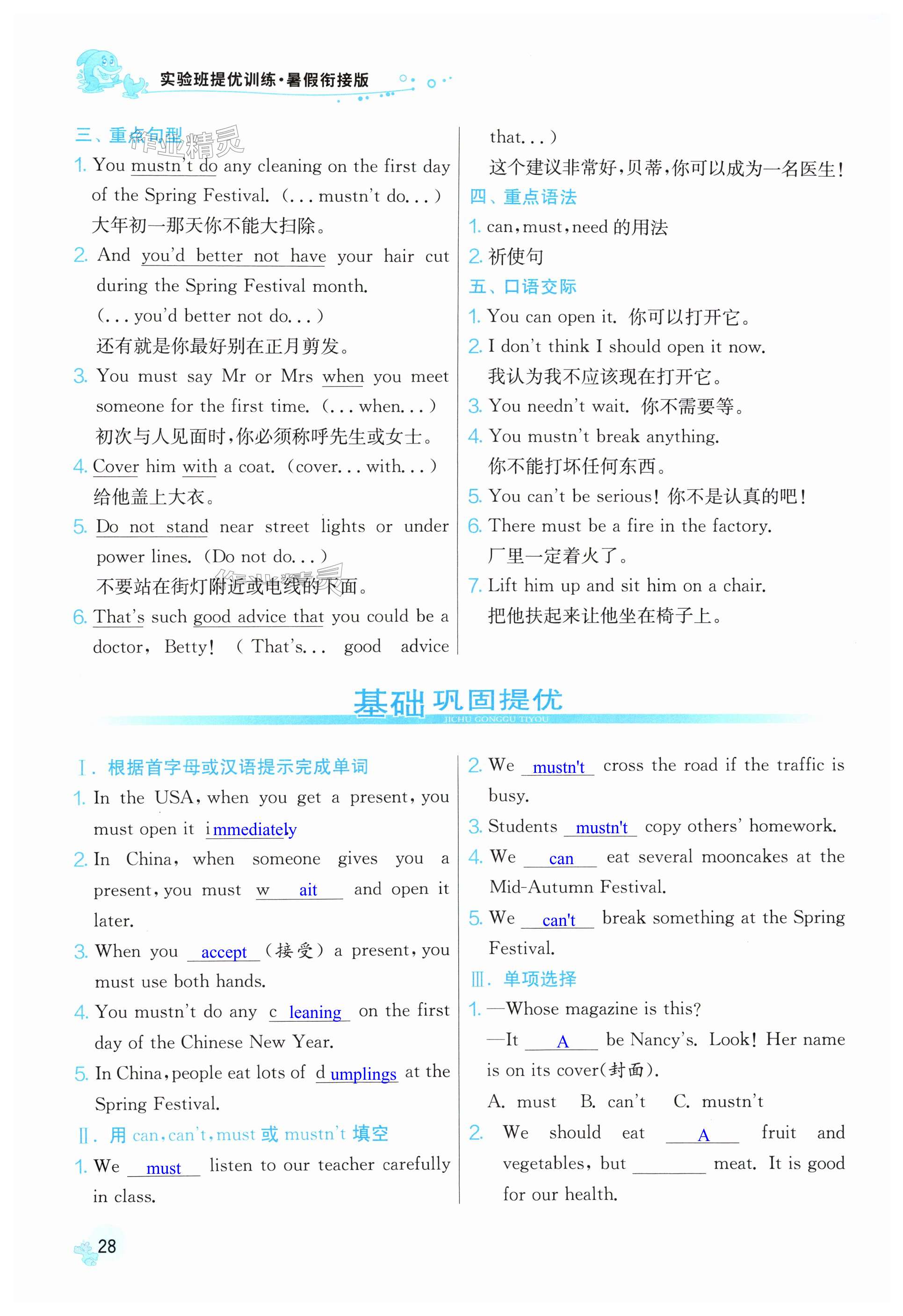 注:目前有些书本章节名称可能整理的还不是很完善,但都是按照顺序排列的,请同学们按照顺序仔细查找。练习册 2025年实验班提优训练暑假衔接版八升九年级英语外研版 答案主要是用来给同学们做完题方便对答案用的,请勿直接抄袭。