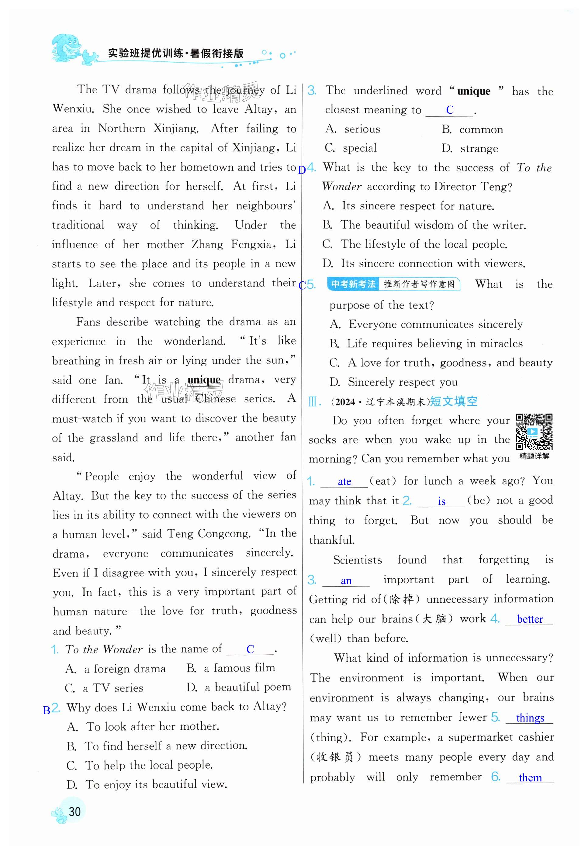 注:目前有些书本章节名称可能整理的还不是很完善,但都是按照顺序排列的,请同学们按照顺序仔细查找。练习册 2025年实验班提优训练暑假衔接版八升九年级英语外研版 答案主要是用来给同学们做完题方便对答案用的,请勿直接抄袭。