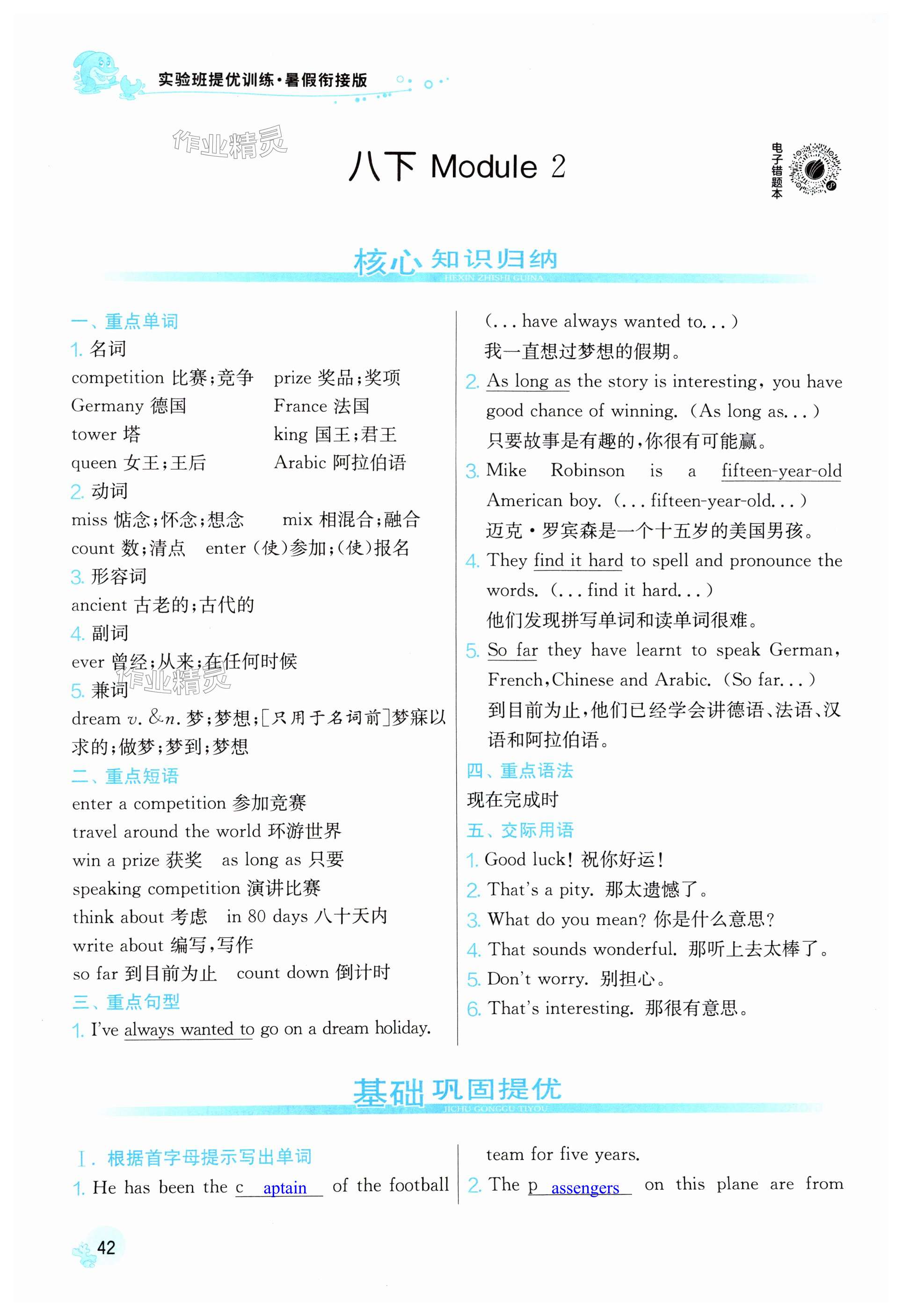 注:目前有些书本章节名称可能整理的还不是很完善,但都是按照顺序排列的,请同学们按照顺序仔细查找。练习册 2025年实验班提优训练暑假衔接版八升九年级英语外研版 答案主要是用来给同学们做完题方便对答案用的,请勿直接抄袭。