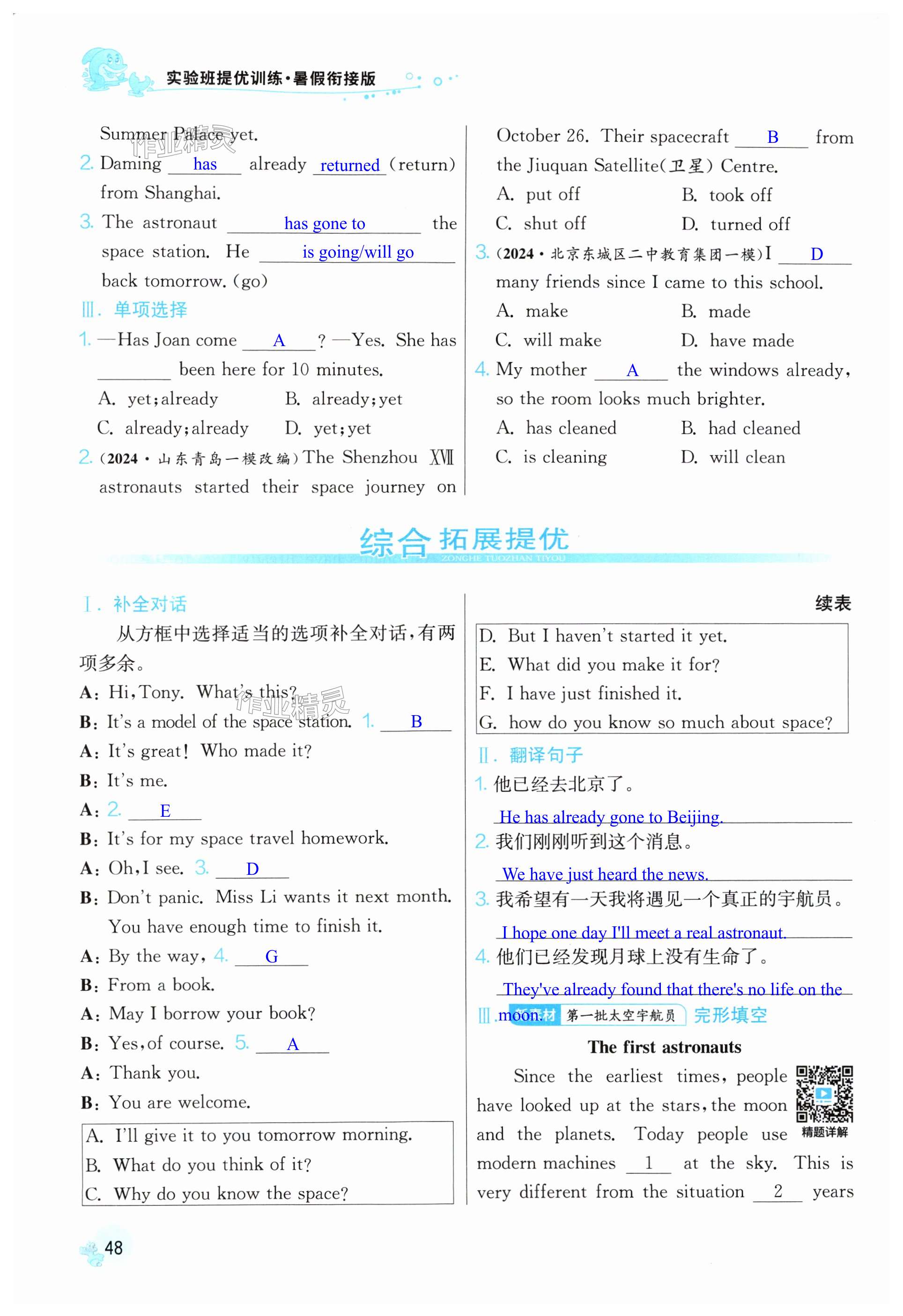 注:目前有些书本章节名称可能整理的还不是很完善,但都是按照顺序排列的,请同学们按照顺序仔细查找。练习册 2025年实验班提优训练暑假衔接版八升九年级英语外研版 答案主要是用来给同学们做完题方便对答案用的,请勿直接抄袭。