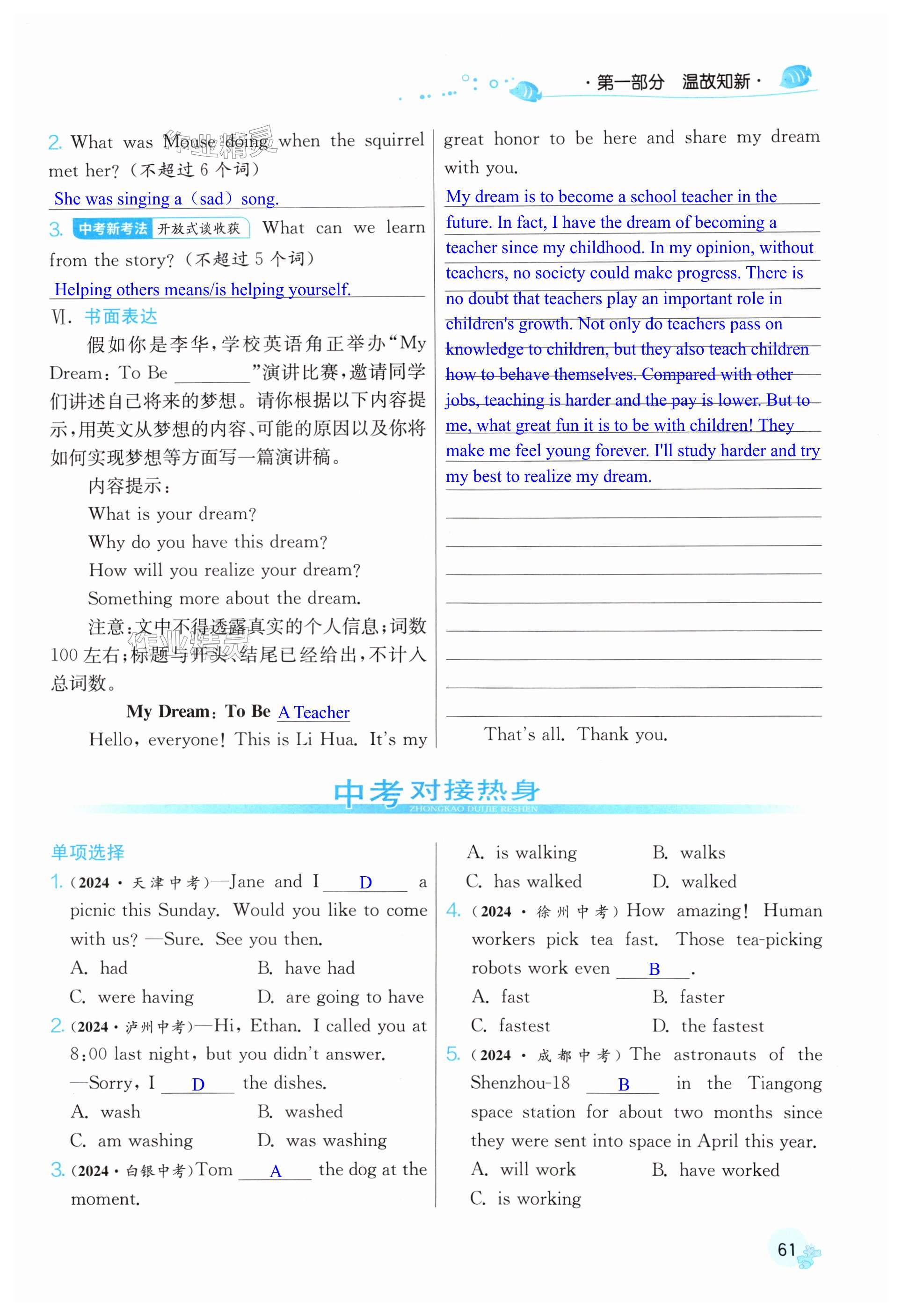 注:目前有些书本章节名称可能整理的还不是很完善,但都是按照顺序排列的,请同学们按照顺序仔细查找。练习册 2025年实验班提优训练暑假衔接版八升九年级英语外研版 答案主要是用来给同学们做完题方便对答案用的,请勿直接抄袭。