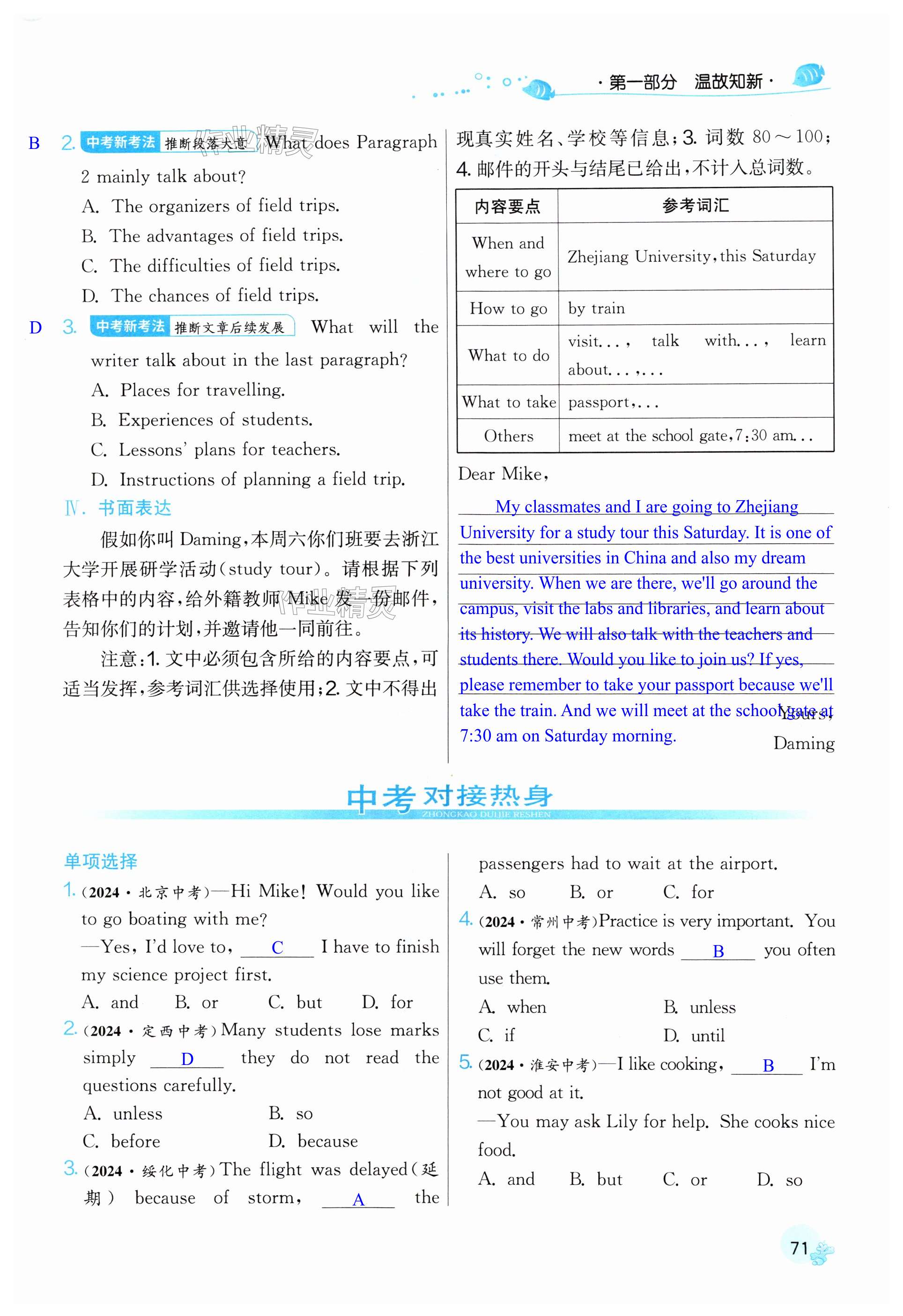 注:目前有些书本章节名称可能整理的还不是很完善,但都是按照顺序排列的,请同学们按照顺序仔细查找。练习册 2025年实验班提优训练暑假衔接版八升九年级英语外研版 答案主要是用来给同学们做完题方便对答案用的,请勿直接抄袭。
