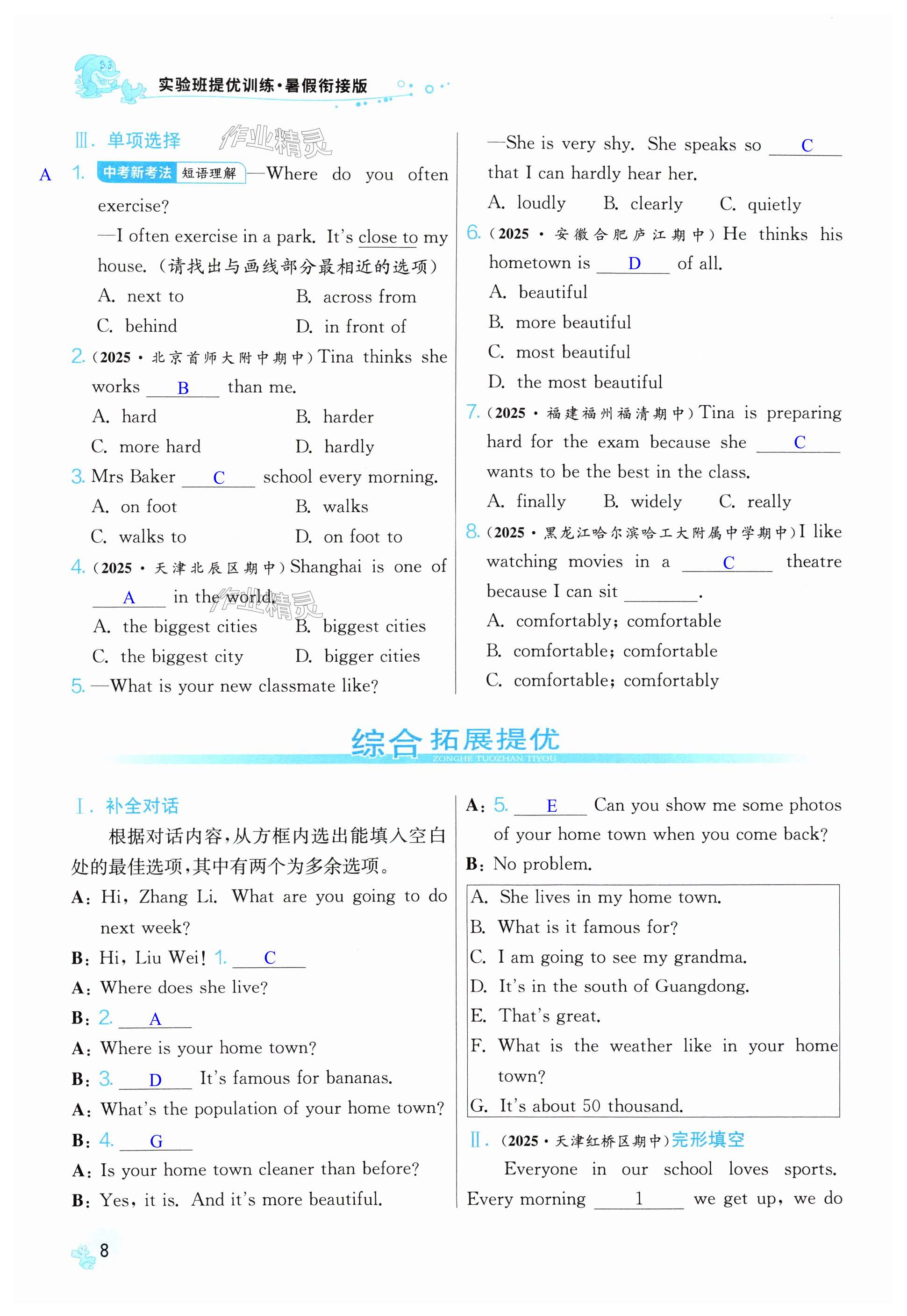 注:目前有些书本章节名称可能整理的还不是很完善,但都是按照顺序排列的,请同学们按照顺序仔细查找。练习册 2025年实验班提优训练暑假衔接版八升九年级英语外研版 答案主要是用来给同学们做完题方便对答案用的,请勿直接抄袭。