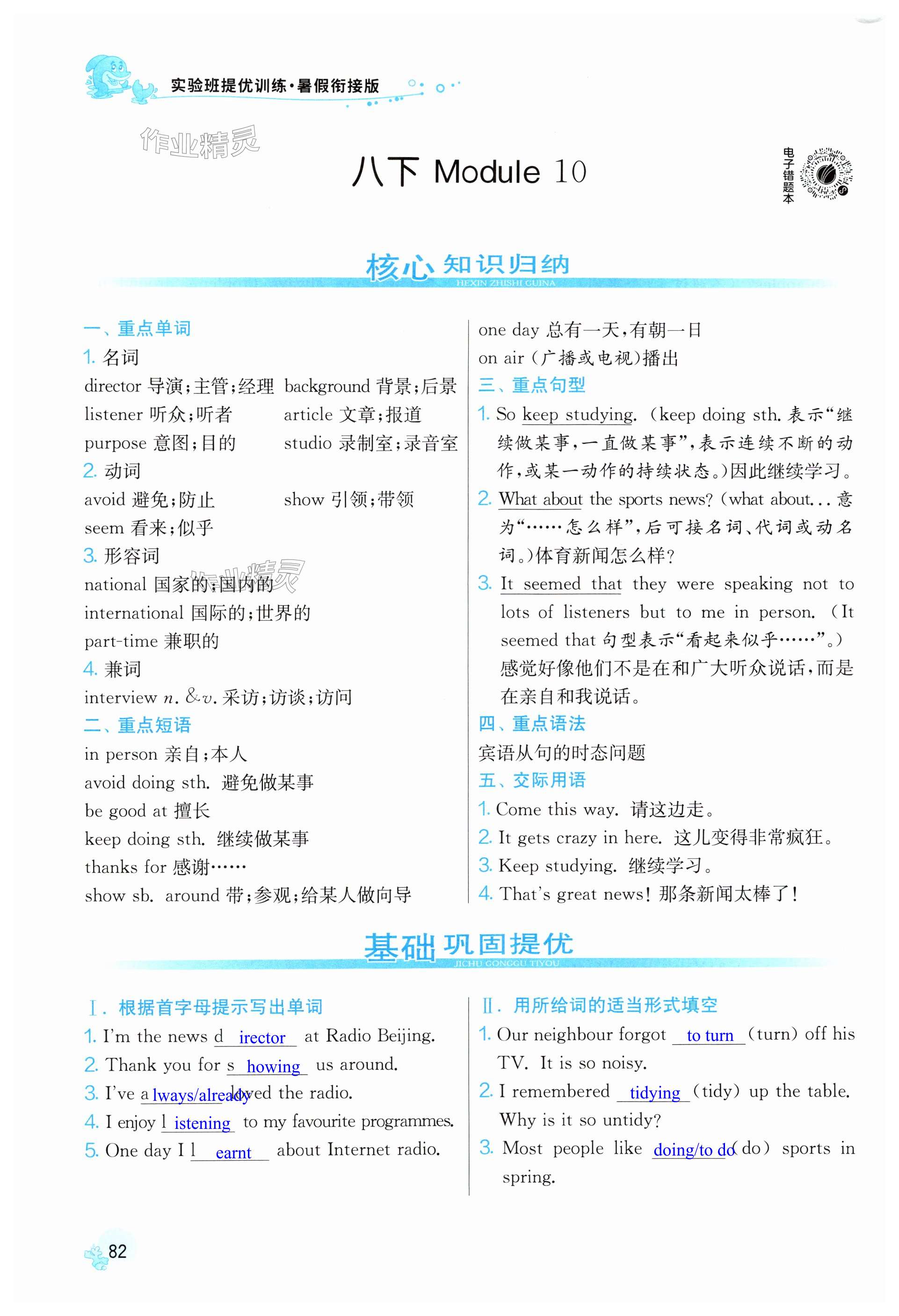 注:目前有些书本章节名称可能整理的还不是很完善,但都是按照顺序排列的,请同学们按照顺序仔细查找。练习册 2025年实验班提优训练暑假衔接版八升九年级英语外研版 答案主要是用来给同学们做完题方便对答案用的,请勿直接抄袭。