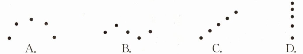 解题总结:做匀速直线运动的物体在相等的时间内通过的路程相等,并且运动的路线是直线。先分析物体的运动是否为直线,然后分析选项看各相邻两点间的距离是否相等,判断物体是否做匀速直线运动。