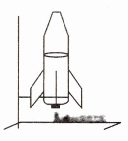 例4 4月份我校将举办科技节,小宇想做一个水火箭。他将一个大的塑料饮料瓶顶部做成子弹头形,瓶中装入约$\frac {1}{3}$的水,瓶口用带有气门芯的橡皮塞塞紧,瓶子两侧装上侧翼。用打气筒通过气门芯向瓶内打气,当气压增大到一定程度时,高压气体将水向下喷射出去,水火箭就会向上腾空而起。使水火箭腾飞的施力物体是
