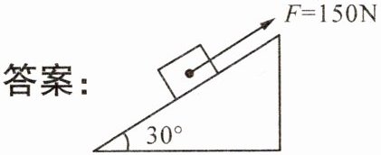 例3 放在倾角为$30^{\circ}$的斜面上的物体受到沿斜面向上的150牛的拉力,请画出该拉力的示意图。