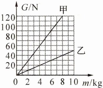 分析:由图可知,当质量都为8kg时,甲的重力为120N,乙的重力为40N,则相同质量的物体在甲星球表面上的重力大于其在乙星球表面上的重力;甲星球表面上物体的重力为120N时,与其质量$m = 8kg$的比值为:$\frac{120N}{8kg} = 15N/kg$,则重力G与其质量m的关系式为:$G = m×15N/kg$。
