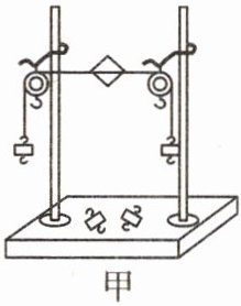(1)将卡片上的两根线跨放在支架的滑轮上,并在两个线端分别挂上钩码,使作用在卡片上的两个拉力方向相反,且在一条直线上。当卡片平衡时,卡片两边所受的拉力大小