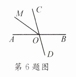 6. 如图,直线 $ AB $,$ CD $ 交于点 $ O $,射线 $ OM $ 平分 $ ∠AOC $,若 $ ∠BOD = 74^{\circ} $,则 $ ∠BOM $ 的度数为 ………………………………………………………………………… (