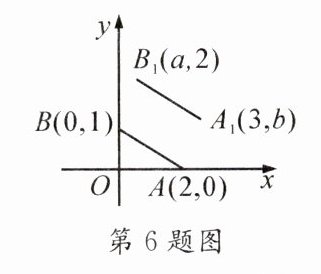6. 如图,$ A $,$ B $ 的坐标分别为 $ ( 2, 0 ) $,$ ( 0, 1 ) $,若将线段 $ AB $ 平移至 $ A _ { 1 } B _ { 1 } $,则 $ a + b $ 的值为 …………………………………………………………………(