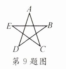 9. 如图,∠A+∠B+∠C+∠D+∠E的度数为 ………………………… (