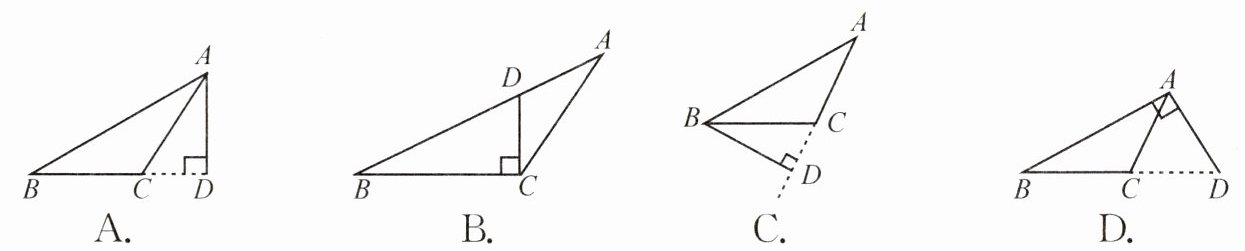 4. 下列是四位同学在钝角△ABC中画BC边上的高的示意图,其中画法正确的是 ………………………………………………………………………… (